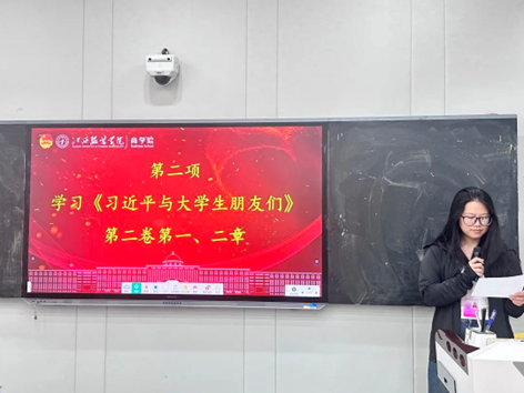 会议第二项,全体成员深入学习《习近平与大学生朋友们》第二卷第一、二章。通过领袖与青年的生动故事,参会人员深刻感悟党和国家对青年一代的殷切期望,进一步明确“以青春之我,筑青春之国”的责任担当。理论学习环节为后续工作注入思想动能,激励成员将个人成长融入时代发展,以更饱满的热情投入学生会工作。