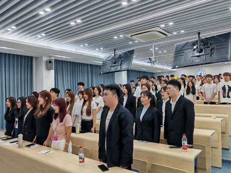 大会在庄严的团歌合唱中拉开帷幕。全体成员齐声高唱《光荣啊!中国共青团》,激昂旋律激荡着青年热血,展现出全体成员紧跟党团组织、以青春之力践行使命的坚定信念。歌声中传递的不仅是对共青团的礼赞,更是对“服务同学、奉献学院”初心的重温。