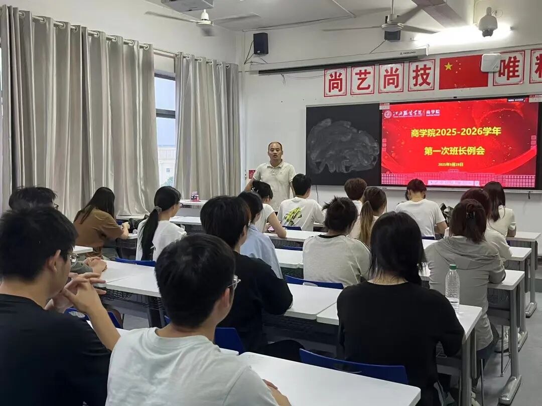 为了提高班干工作凝聚力,提升同学们日常生活中的安全意识与反诈意识,江西服装学院商学院于2025年9月29日在主教楼411召开了2025-2026学年第一学期第一次班长例会,会议由学工办副主任欧阳耀诚老师主持,商学院各班班长共聚一堂,此次会议旨在提升学院风范建设。