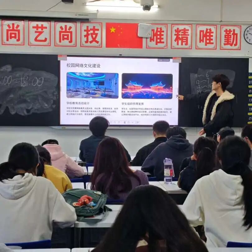 活动伊始,主持人向各班班长、评委及在座同学致以诚挚问候,并向大家简要阐明本次初赛的主题与规则,随后便宣布本次比赛拉开帷幕。活动过程中,各位参赛班长按照抽签的顺序依次上台,围绕环保、人际交往、AI等主题展开分享,深入探讨了主题班会在班级建设中的价值与作用,并分享了各自班会设计的思路与实践成果。