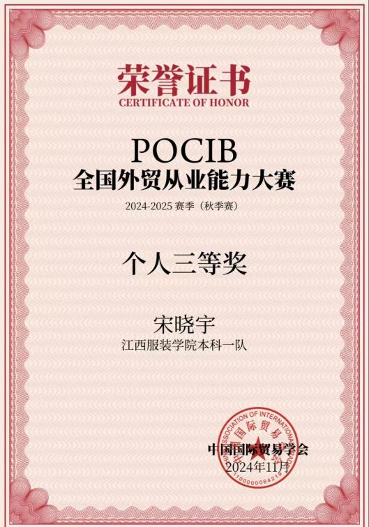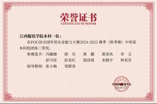 2024年获全国外贸从业能力大赛个人赛三等奖、团体赛二等奖