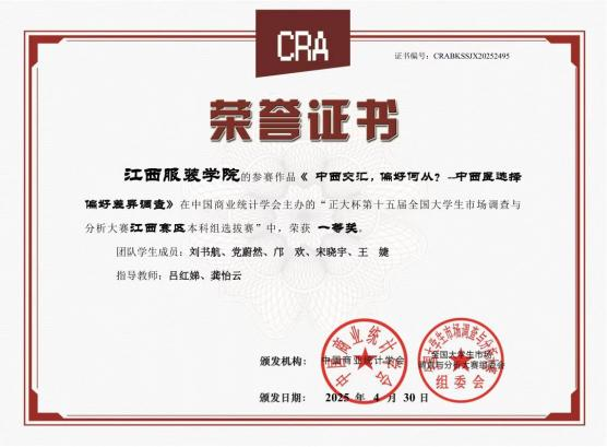 2025年获正大第十五届全国大学生市场调查与分析大赛江西赛区本科选拔组一等奖
