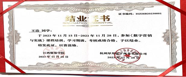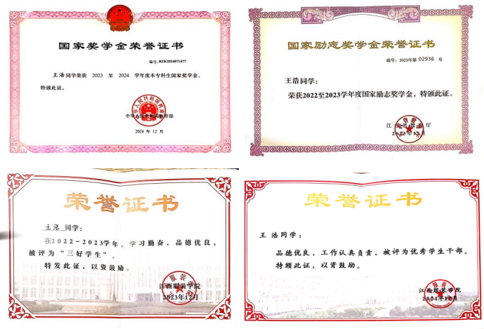 “知不足以奋进,望远山而前行”,王浩以严谨自律深耕专业,连续三年专业第一(均分 92.10),任 22 电商本科 1 班学委、电商社团副社长,带头营造优良学风。她主动拓展能力边界,拿下英语四六级(四级 469 分、六级 449 分)、普通话二级甲等、高中历史教师资格证,完成《数字营销与实战》培训结业,构建 “专业 + 技能” 双优体系。