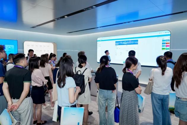 15:40 起,参访团分批抵达金蝶软件园,开启深度交流。在金蝶云展厅(13F)与金蝶云——天际会客厅(38F),专人讲解金蝶在企业数字化领域的技术成果与服务案例,展示财务数字化、业财一体化等核心解决方案;参观结束后,各高校代表分赴星辰 / 星空 / 星瀚 / 苍穹会议室,围绕“校企合作人才培养”展开专项交流,江西服装学院商学院代表结合本校财会专业特点,就“数字化课程共建”、“企业导师引入”、“实训项目开发”等话题与金蝶教育事业部团队深入探讨,初步达成合作意向。